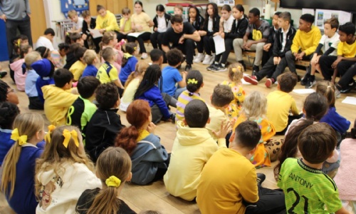 Everyone wore something yellow to show that no one ever has to feel alone with their mental health. Throughout the day, classes took part in thoughtful, age-appropriate wellbeing activities:
