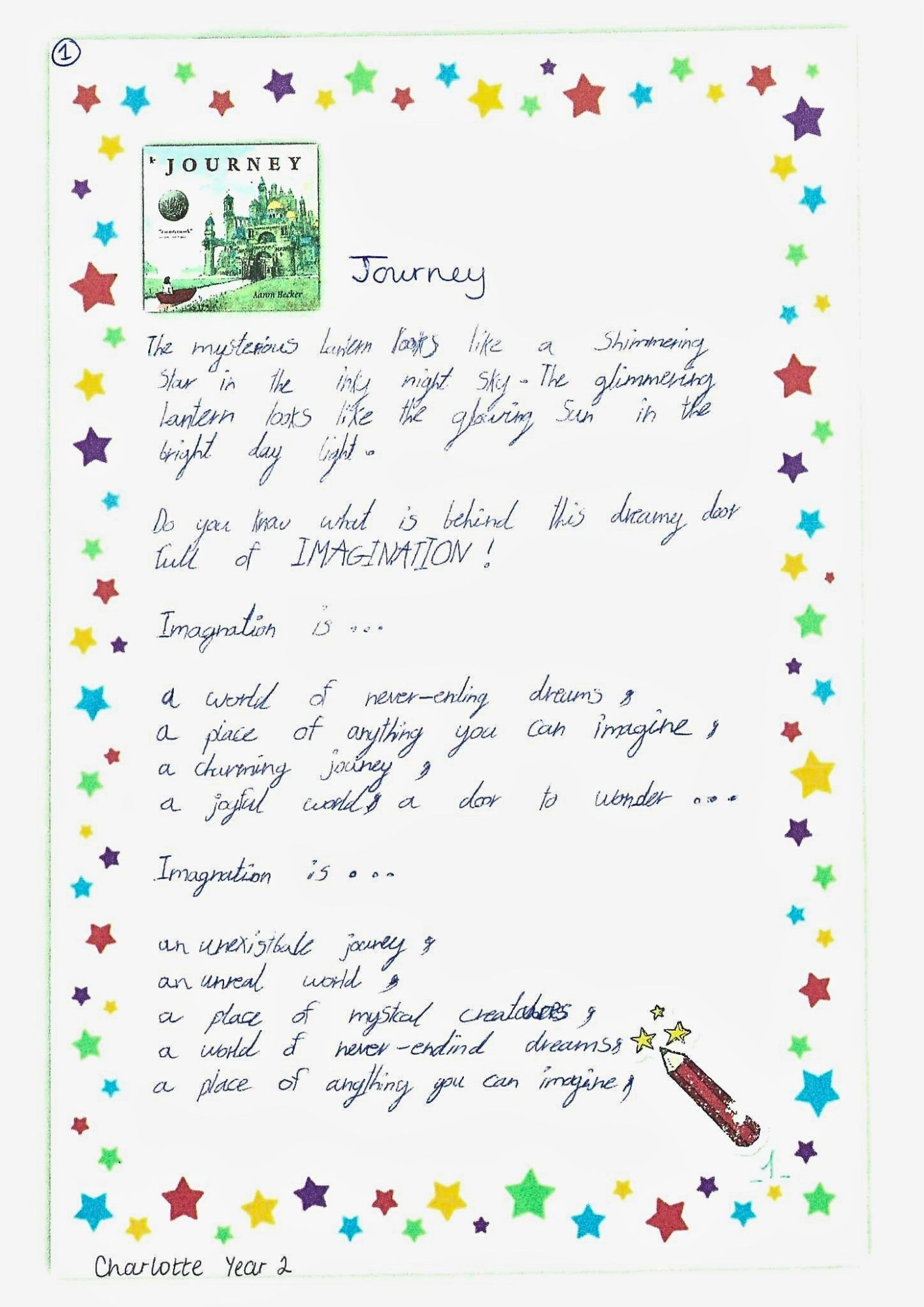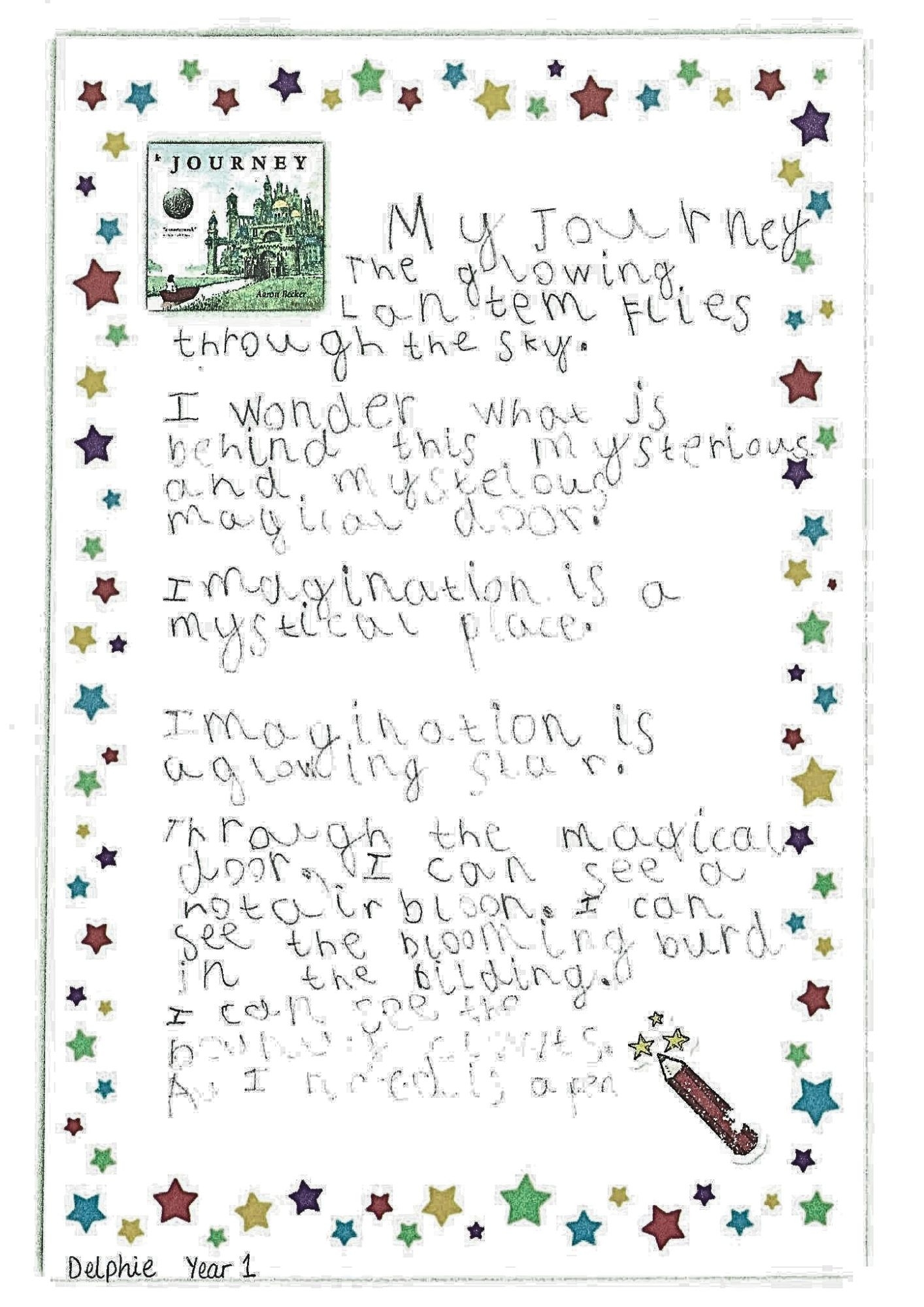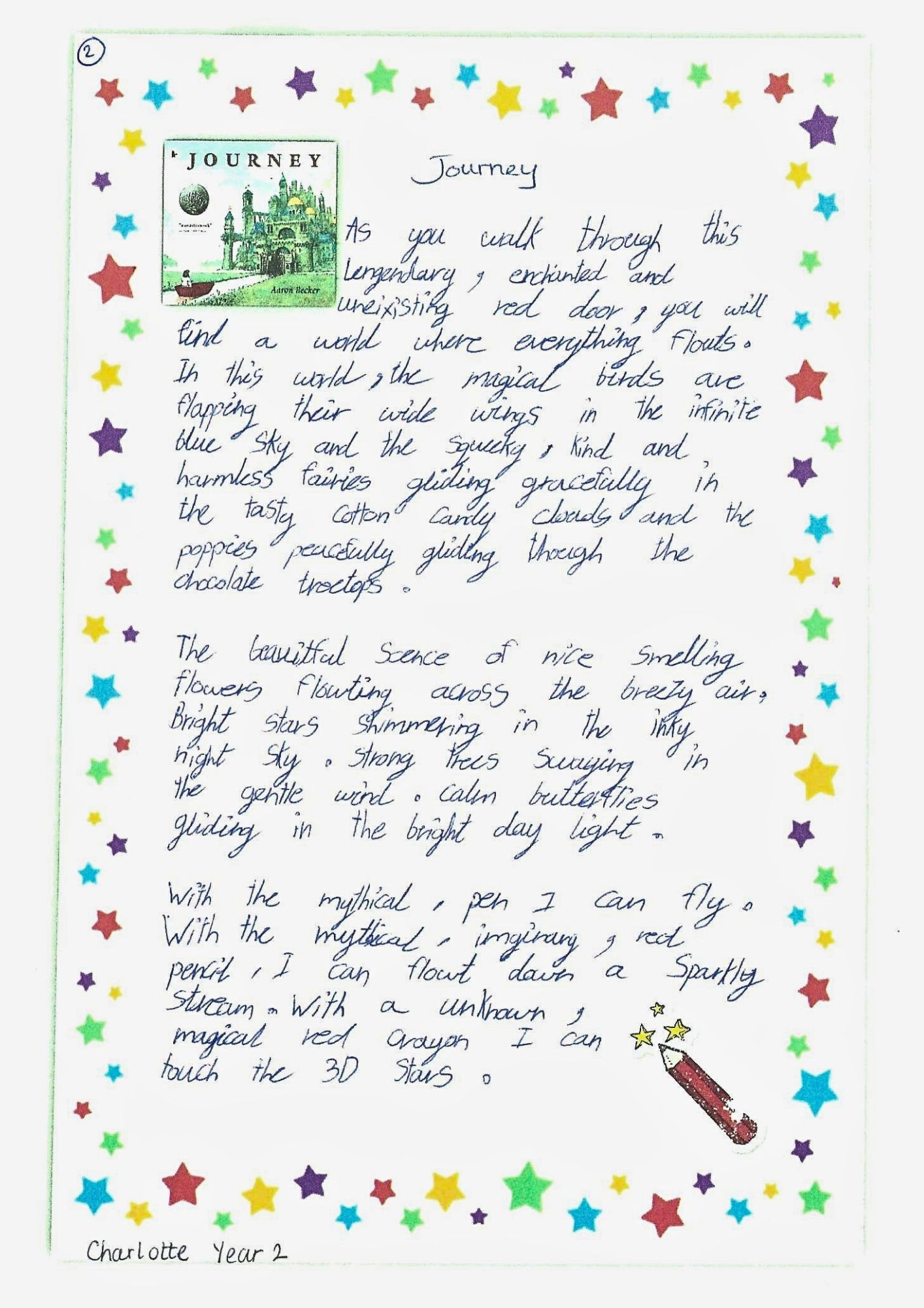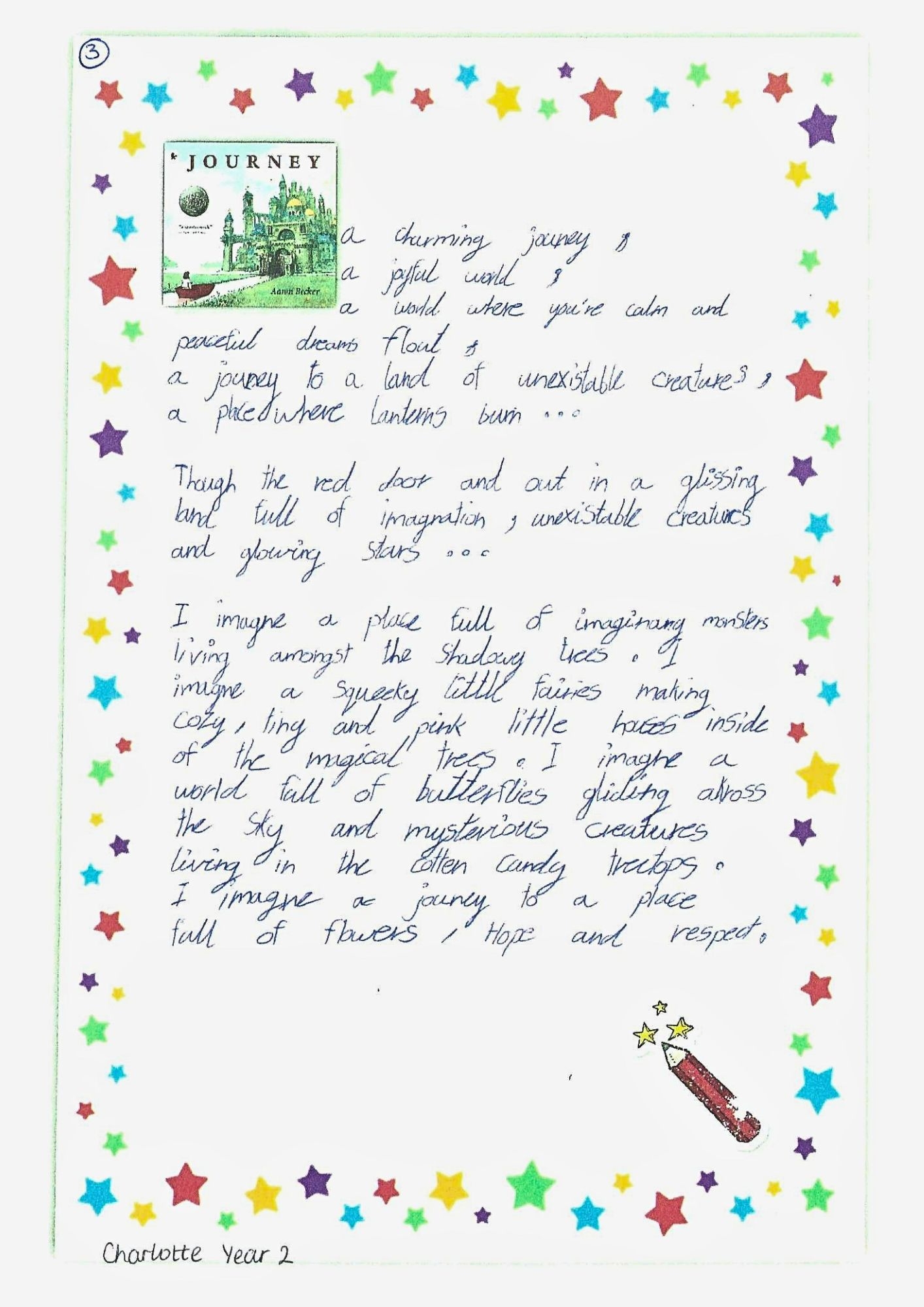 This year, the book chosen to inspire the award was Journey by Aaron Becker – a beautiful, wordless story that invites children to dream, wonder and create whole worlds of their own. Using the images as a springboard, the children wrote their own imaginative pieces, bringing forests, adventures and magical red doors to life.