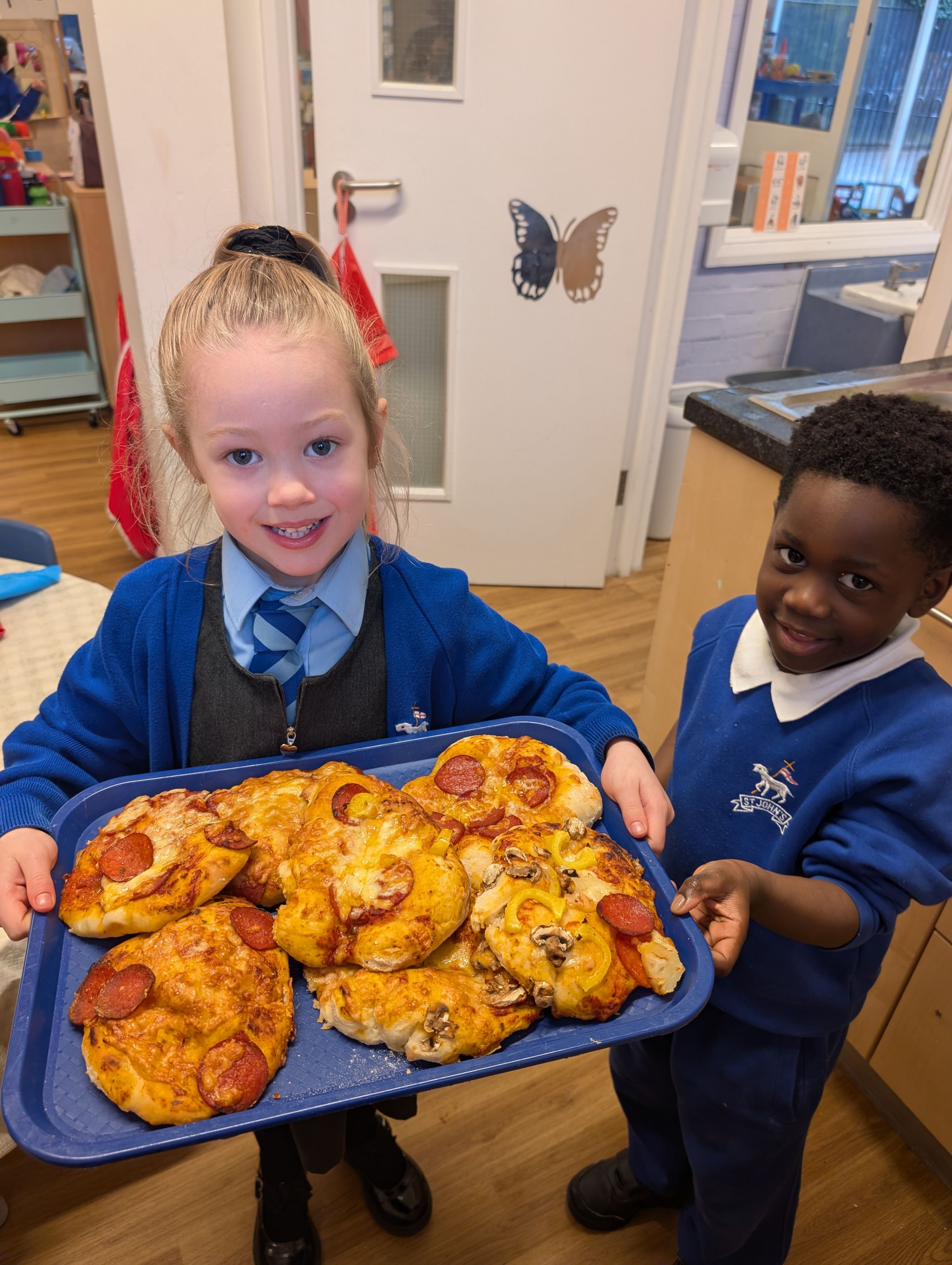 Before long, trays of homemade pizzas filled the oven. The smell drifting through the school was irresistible (even Mrs Notley noticed!)