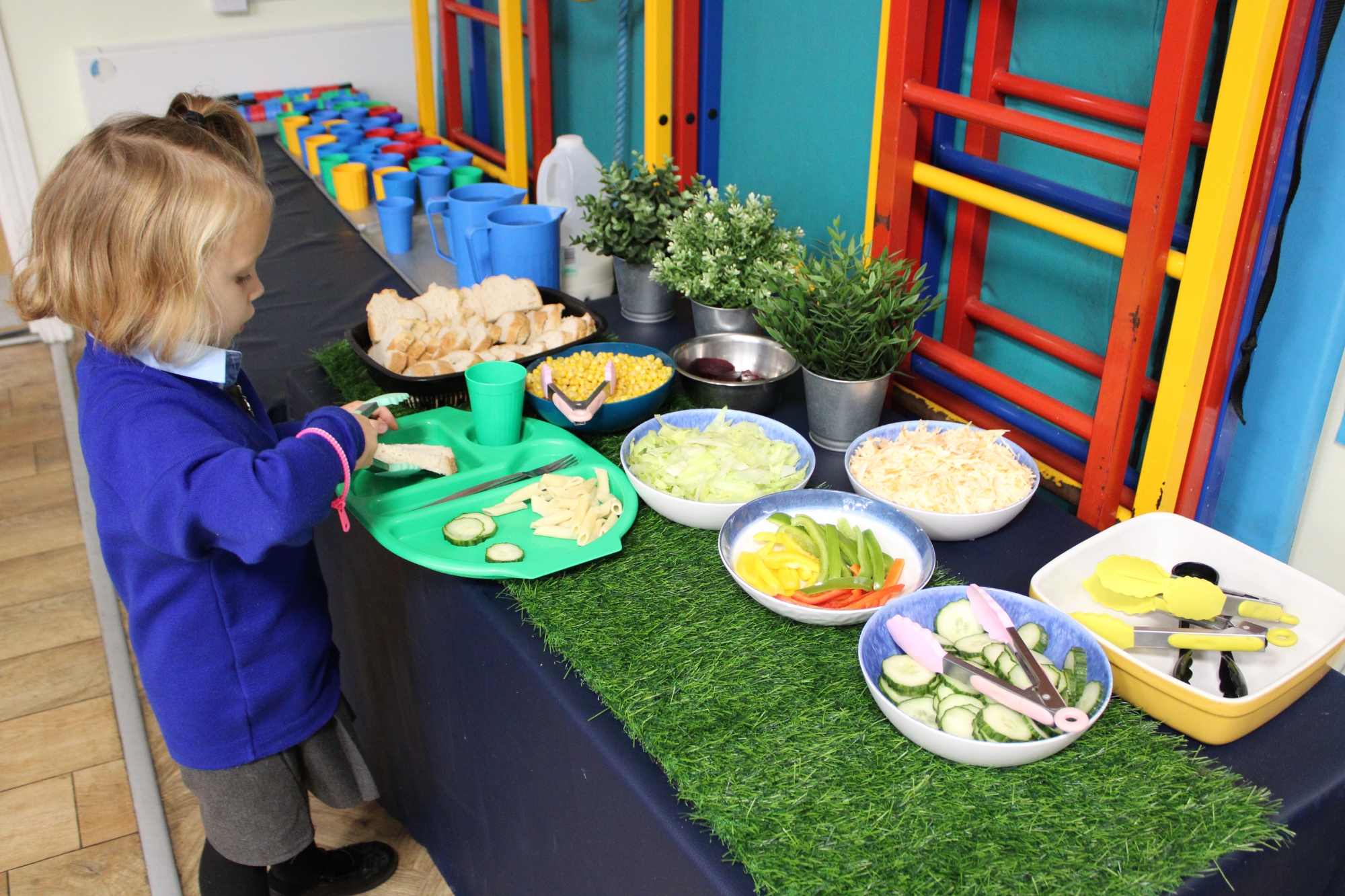 Our school meals are freshly prepared on site by Stir Food, who provide a varied and nutritious menu that follows strict Healthy Eating standards. Meals are designed to be appealing to children, with plenty of choice and encouragement to try new foods.